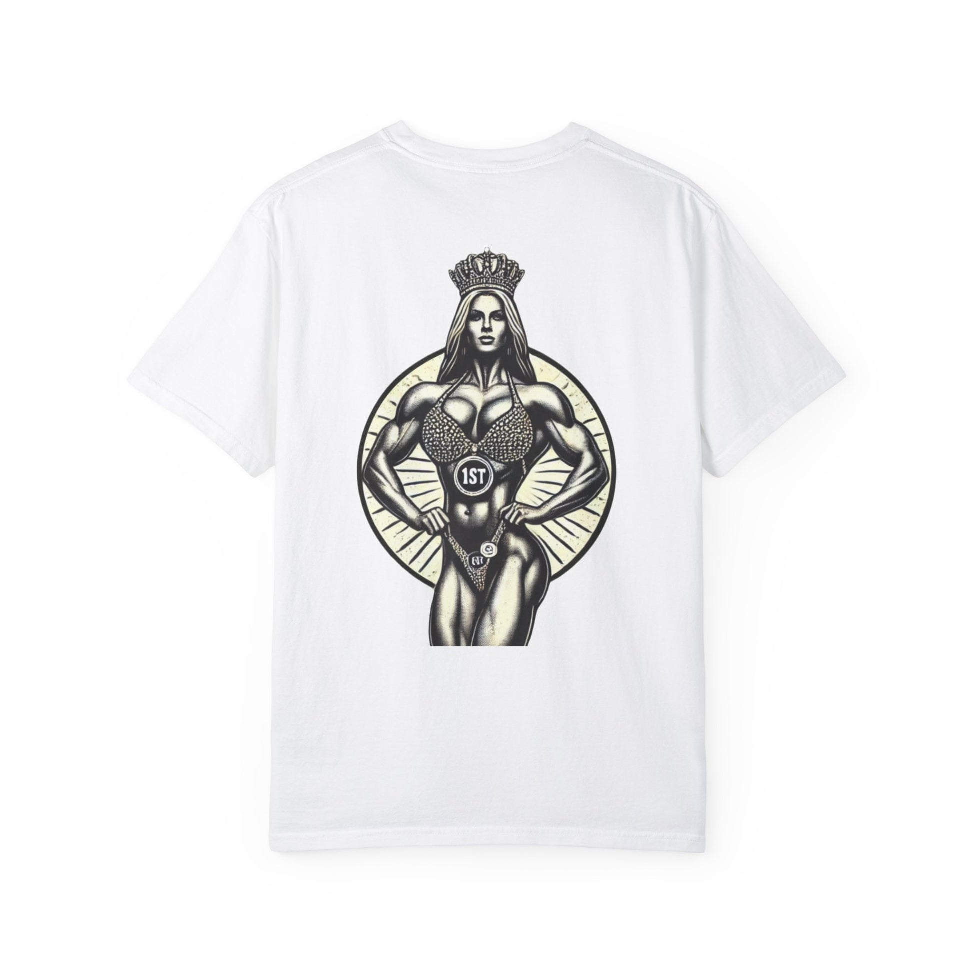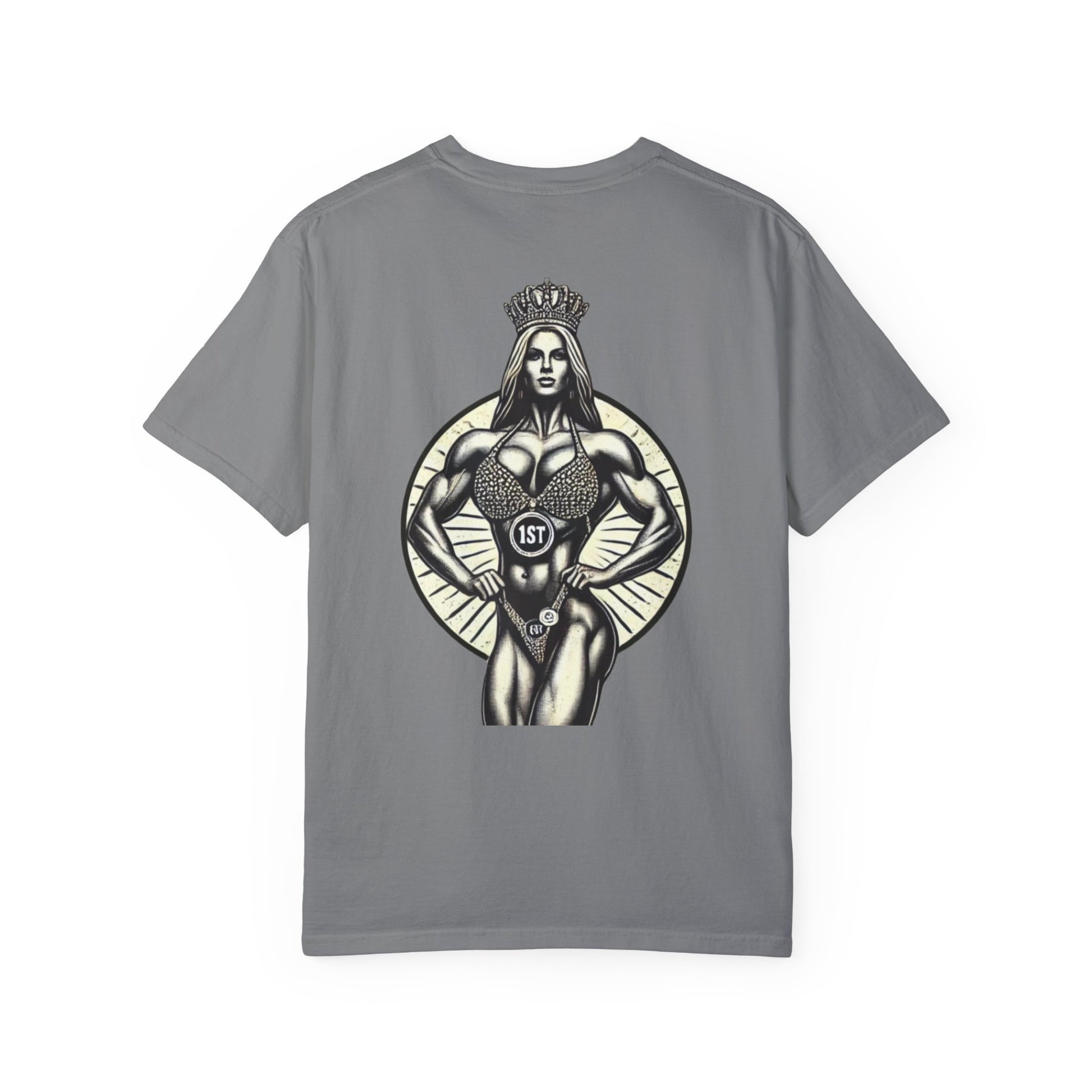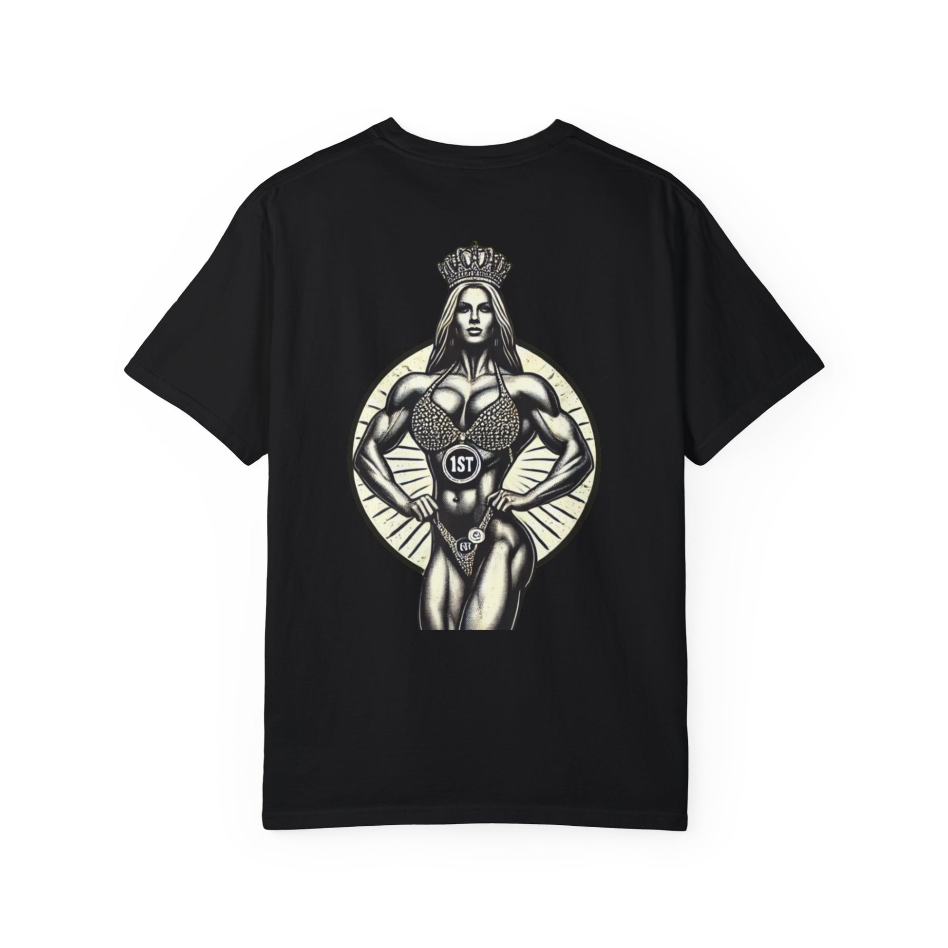 Featuring a bold graphic of a crowned champion and the proud Queen of Iron insignia, this shirt is perfect for those who wear their strength with pride. Made for lifters, competitors, and queens who dominate inside and outside the gym. Soft, durable cotton makes it perfect for training or everyday wear.