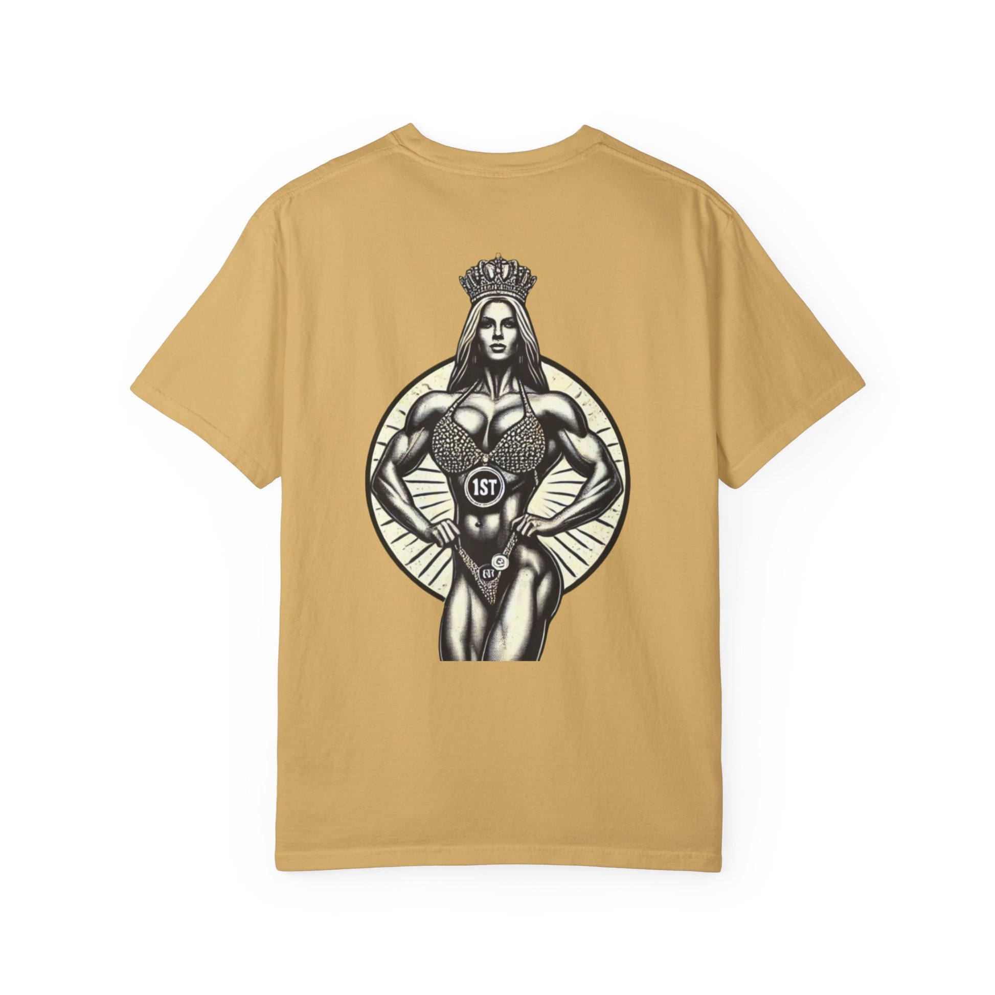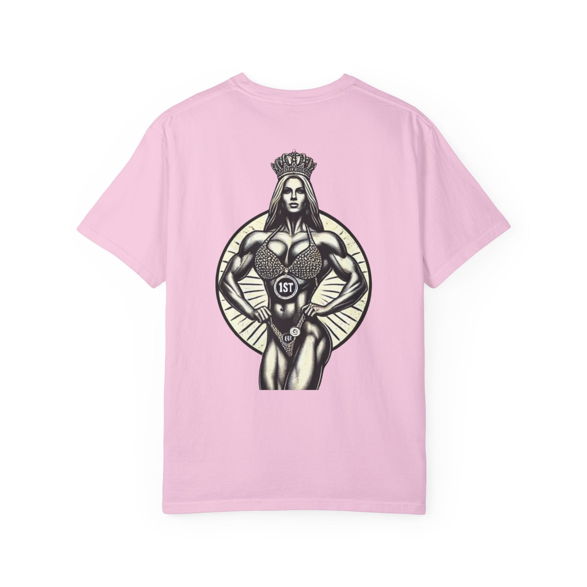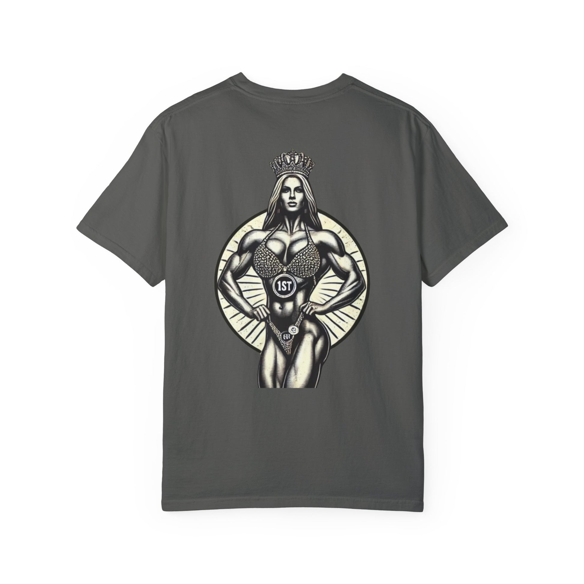 Featuring a bold graphic of a crowned champion and the proud Queen of Iron insignia, this shirt is perfect for those who wear their strength with pride. Made for lifters, competitors, and queens who dominate inside and outside the gym. Soft, durable cotton makes it perfect for training or everyday wear.